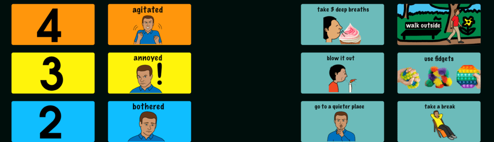 Visual supports with voice output for the “win”! I attended a presentation by Kari Dunn Buron, coauthor of The Incredible 5 Point Scale, at the Oklahoma Autism Conference offered by the Oklahoma Autism Network in 2017 and was inspired to make this for a patient who had been having a particularly difficult time and exhibiting a significant increase in aggressive behaviors. I watched for very subtle signs of increased agitation and modeled use of this to both talk about emotional states and offered choices to help calm before he got beyond a “Level 3”. He showed understanding of it the very first day and smiled when I acknowledged that he was struggling. He chose “go for a walk outside” and “go back to the house and rest”. The next day he spontaneously tapped “go for a walk outside” before he got beyond a “Level 2” and a huge smile washed over his face as we exited the sensory overload inside the building into the brisk air and total peace outside. I was often totally overstimulated by all the “Christmassy” stuff at our facility too so we ended up taking lots of walks outside 😉.