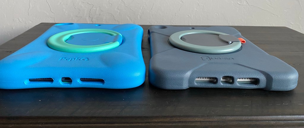 The Buddy 10 case is similar to a Pepkoo case but more muted colors, a little slimmer, has a spot to hold an Apple Pencil and the attached rotating stand doesn’t lay quite as flush as the one on the Pepkoo (so it may wobble a little if laid flat).