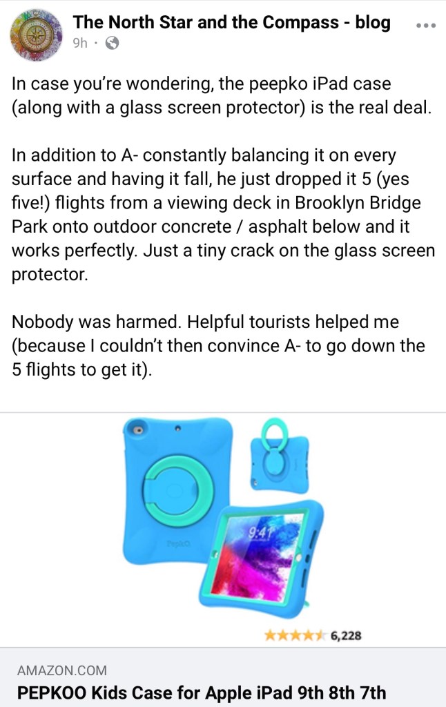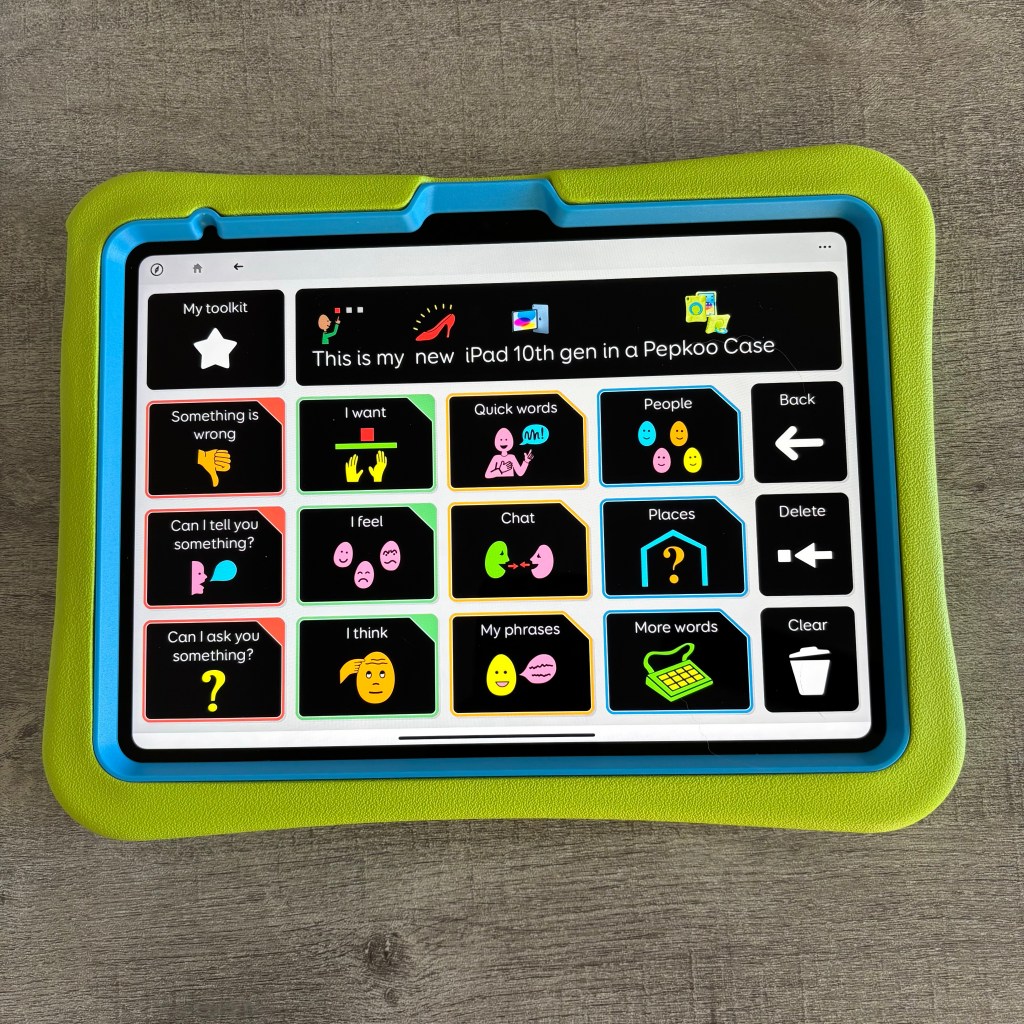 Update 1/27/24: See this post by a parent describing how the Pepkoo + a tempered glass screen protector protected her son’s iPad AAC device during a fall down 5 flights of stairs: