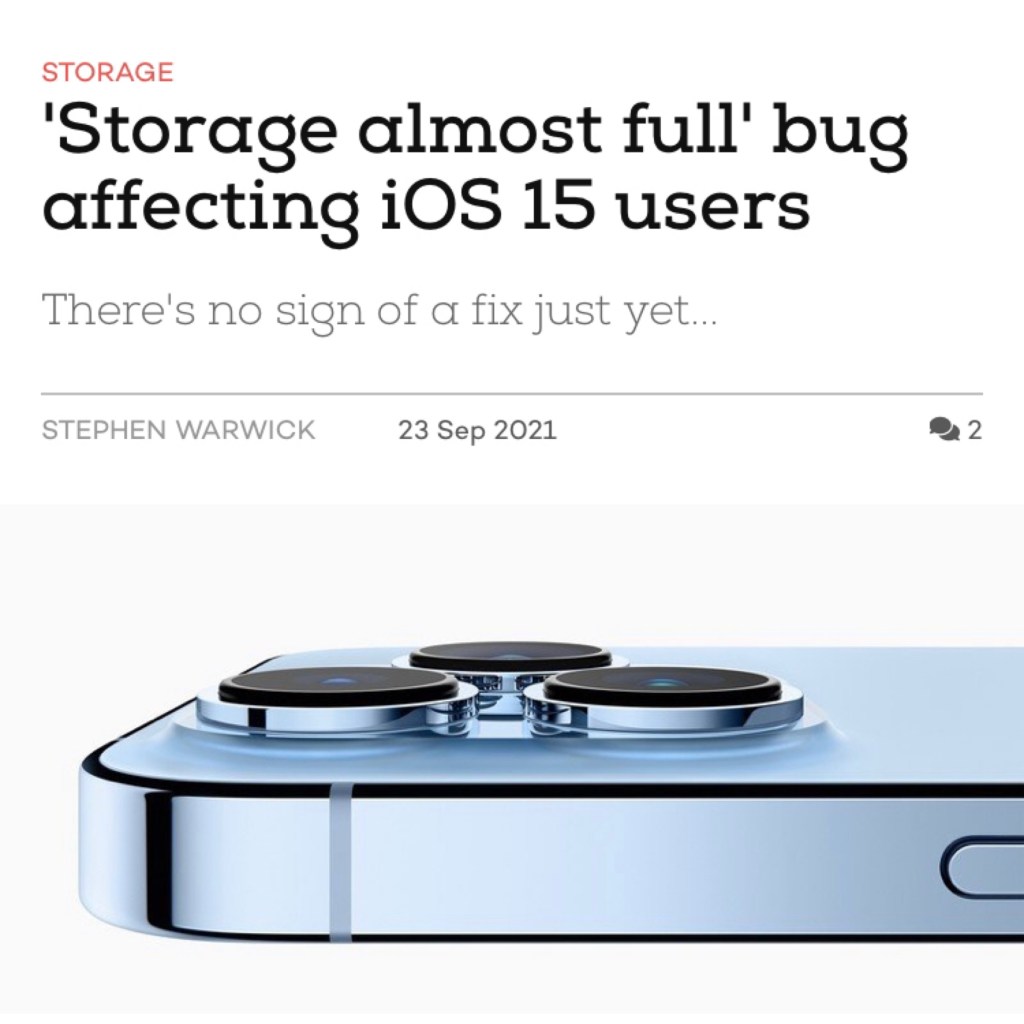 Update: As anticipated there are problems with iOS 15. See this info https://www.imore.com/storage-almost-full-bug-affecting-ios-15-users