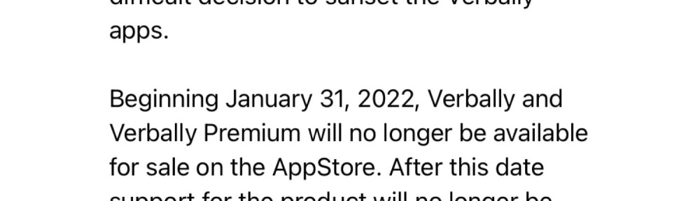 “It has come to our attention that the Verbally and Verbally Premium apps are no longer compatible with the latest versions of iOS. Because of this, we have made the difficult decision to sunset the Verbally apps.