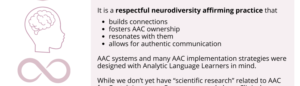 AAC systems and many AAC implementation strategies were designed with Analytic Language Learners in mind.