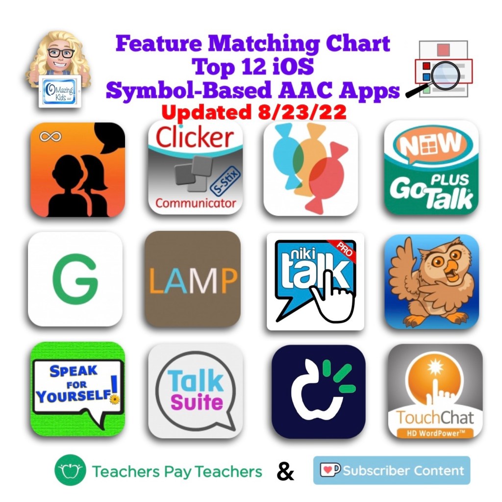 🎉 Resource Update Alert 🎉 8/23/22 Updated Feature Matching Chart for the Top 12 Robust iOS Symbol-Based AAC Apps. Those who have previously purchased this resource can download the latest version for no additional cost on TPT: https://bit.ly/SymbolBasedAACapps.