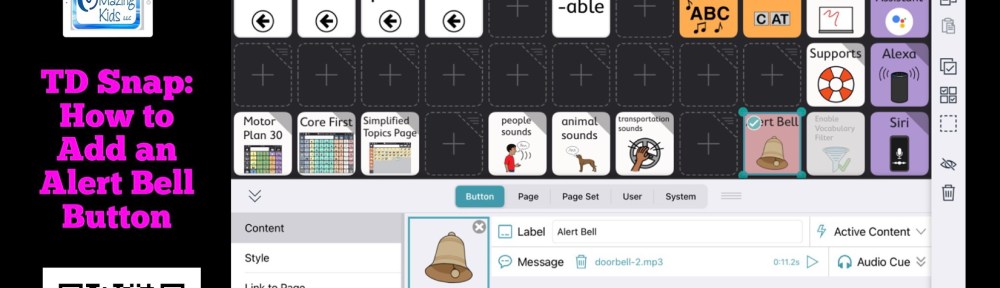 In this video I show how and discuss why I typically add an Alert Bell button in TD Snap. The most time consuming part was finding a free mp3 doorbell sound that was both pleasant and sustained long enough to gain attention. Here’s the website that I used: https://www.soundjay.com/doorbell-sound-effect.html.