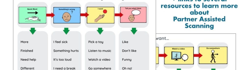 - a page with links to six resources to Learn How to Do Partner Assisted Scanning (including Partner Assisted Auditory Scanning – PAAS)