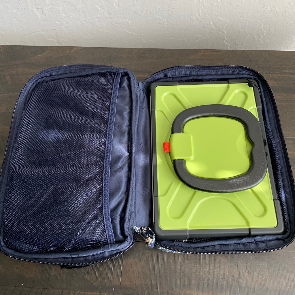 I have it stored in a Vera Bradley Java Navy Camo “Baby Changing Pad” pouch. The front of it has a zippered pocket where I store the charging cord, plug and stylus. This item was on sale for a great price again in May ($19.60) so I purchased a third one specifically to store this device. It’s priced higher now but prices on Amazon change frequently so it’s something that you may want to save in your cart and watch for a good sale: https://a.co/d/dSPfFhM
