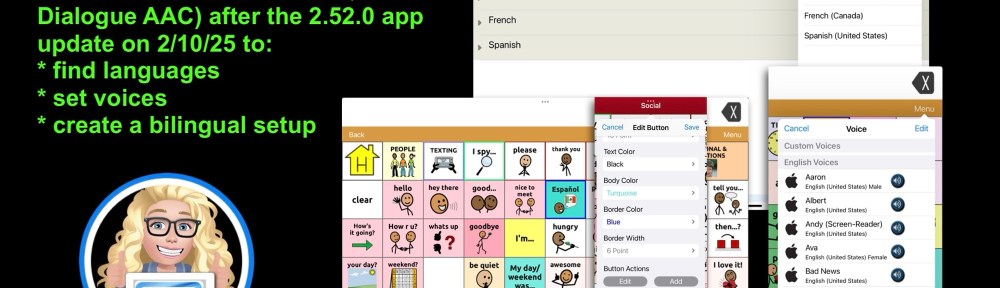 I’ve seen numerous posts and comments from folks frustrated and confused by the change in the way that all of the PRC-Saltillo AAC apps (LAMP Words for Life, TouchChat with WordPower and Dialogue AAC) handle languages, voices and bilingual / multilingual vocab files.