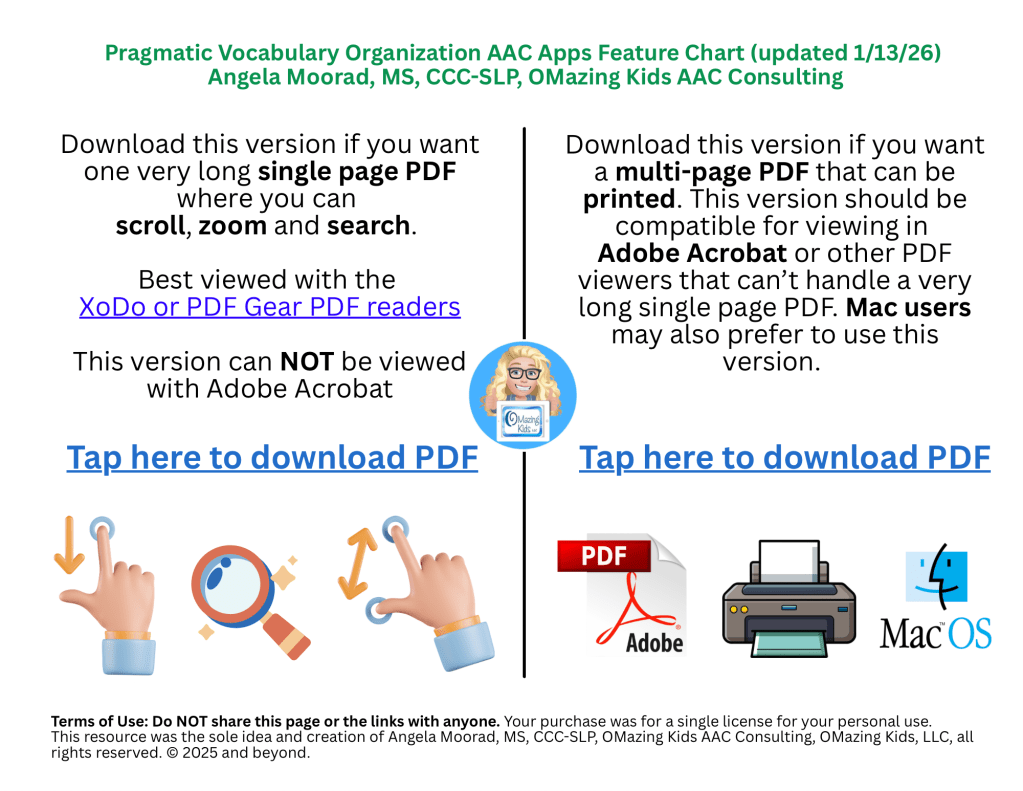 Resource Update: The Feature Matching Chart for Pragmatic Vocabulary Organization AAC Apps has been updated (1/13/26).