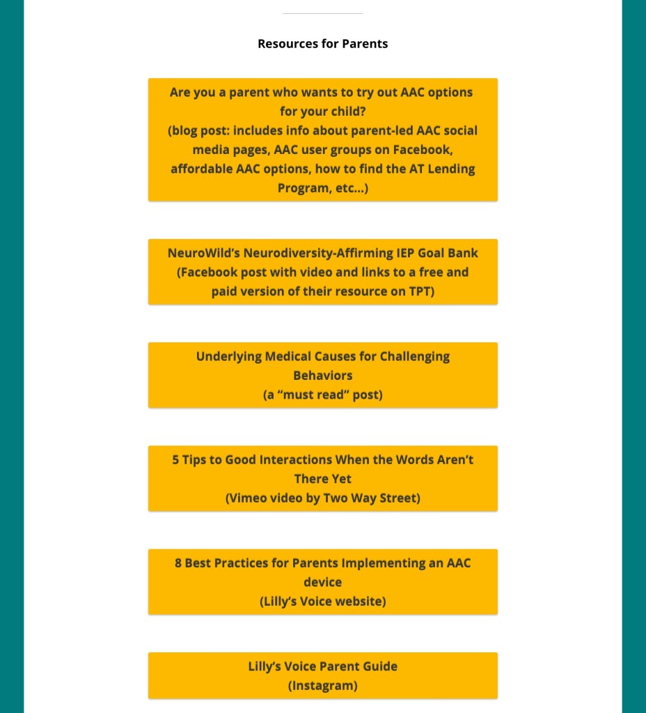 I’m not currently offering in-depth virtual AAC consultation or coaching but may consider doing that at some point in the future.