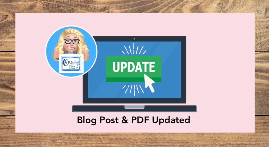The PDF in the “The iPad & the SLP in 2020 and Beyond: Interactive PDF Resource List of iOS apps, Boom Cards, Teachers Pay Teachers materials, Teletherapy Resources and Online Resources – organized by goal areas, themes and topics” blog post was updated today (1/14/21).