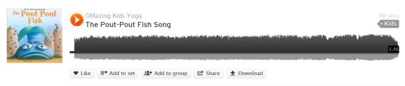 I use the plush fish & octopus as props. They can ride the waves of a child’s breath when relaxing in Savasana, passed in a seated twist around the circle, describe how they are “alike” & “different”, etc…. I also have used a ball or beach ball to play a game of “pass the pearl” with our feet around the circle when we find Ms. Clam’s missing pearl at the end of The Pout-Pout Fish in the Big-Big Dark.