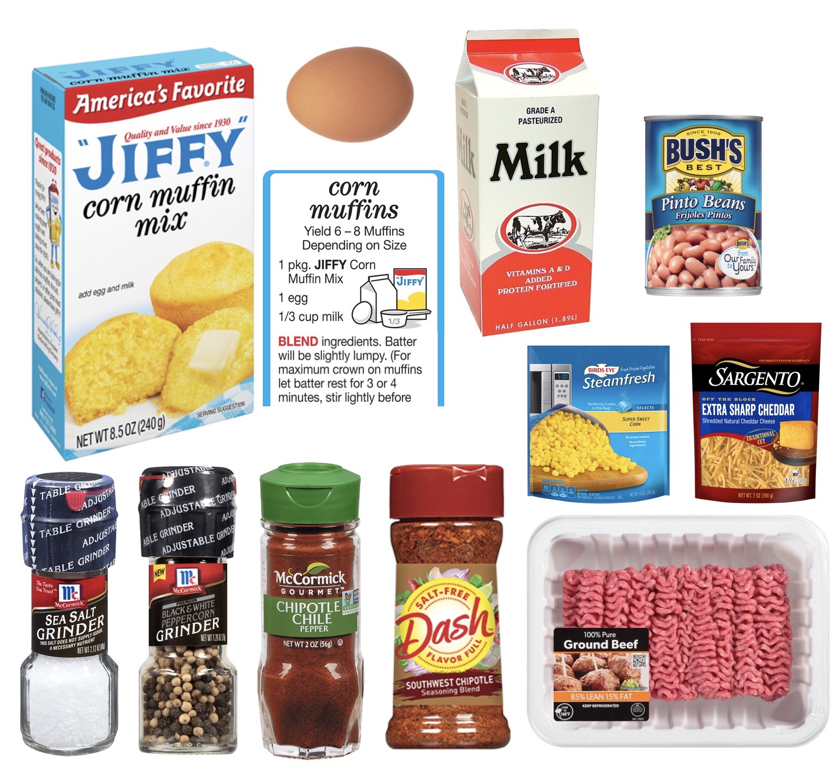 - Prepare one box of Jiffy Corn Muffin Mix according to the directions on the side of the box. Let batter rest for a couple of minutes.