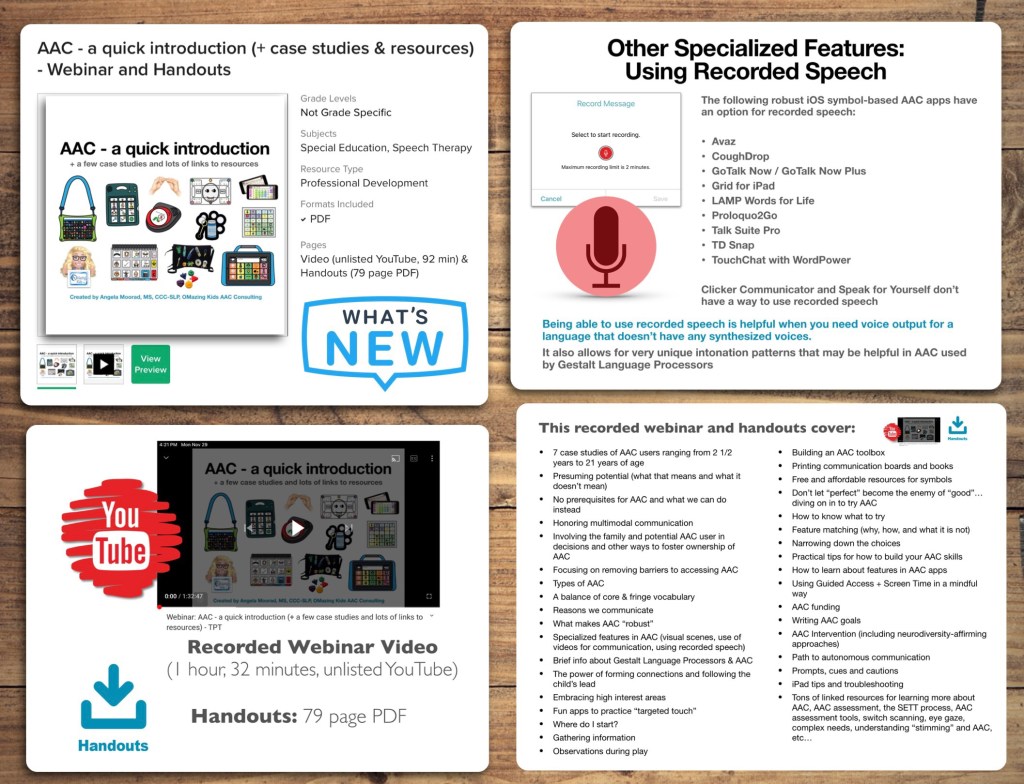 • Tons of linked resources for learning more about AAC, AAC assessment, the SETT process, AAC assessment tools, switch scanning, eye gaze, complex needs, understanding “stimming” and AAC, etc…
