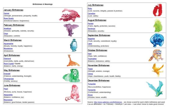 I tie in affirmation mantras based on the meanings for the birthstones (see free printable below) & include a discussion about the beauty inside each of us and the power of positive words & friends.