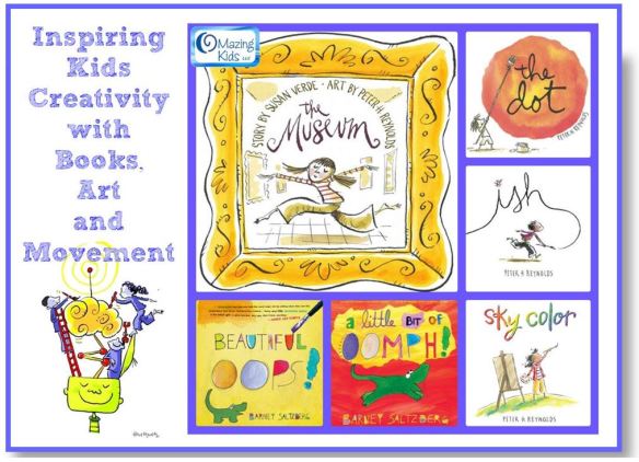 I love combining books, art & movement to inspire creativity in kids! Here are my “five faves” for this: