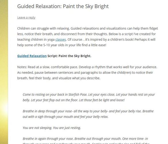 Update 8/4/13: A great “Paint the Sky” guided relaxation from A Seedling’s Nightstand.