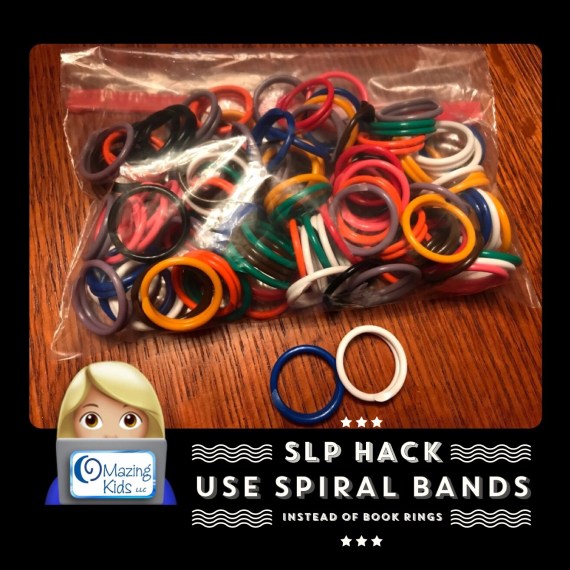 Looking for an easy and inexpensive way to assemble interactive books and other materials? I like to use spiral bands instead of book rings. They are flexible, easy to thread through and spring back into place (unlike metal spiral rings). Plus they don’t come unsnapped like book rings do. These also come in handy when needing to attach carrying straps to items. Here is what I recently ordered. They are 1″ in diameter. Several smaller sizes are available.