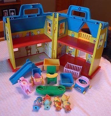 Most of the kids on my caseload have Autism or similar diagnoses and respond well to use of visual supports. For kids who are verbal, I use a variety of visual supports to show them how to create sentences. The picture at the top of this post is an example of my latest creation to go with my vintage Illco Sesame Street House (circa 1988) and wooden Fisher Price Mini Bus and Little People (circa 1969). It’s always cool to see how well my patients respond with use of these visual supports. Instead of imitating a word or maybe two, they are much more likely to imitate a whole utterance and then often use that utterance again spontaneously within that session.