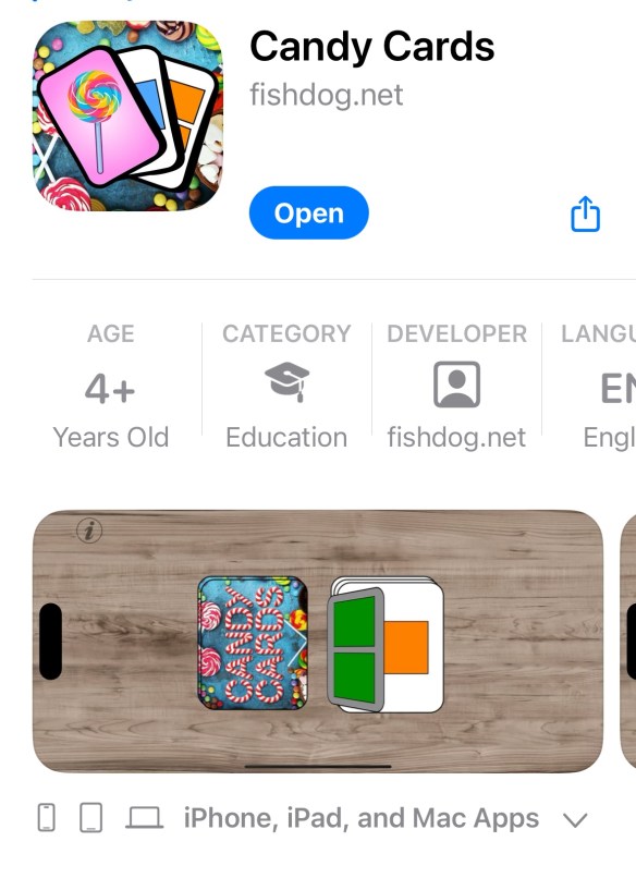 Update 3/19/24: Fishdog.net released their new FREE Candy Cards app today: https://apps.apple.com/us/app/candy-cards/id6478815300, iOS Universal, iOS 12.0 or later + Mac on macOS 10.15 or later + Apple Vision on visionOS 1.0 or later.