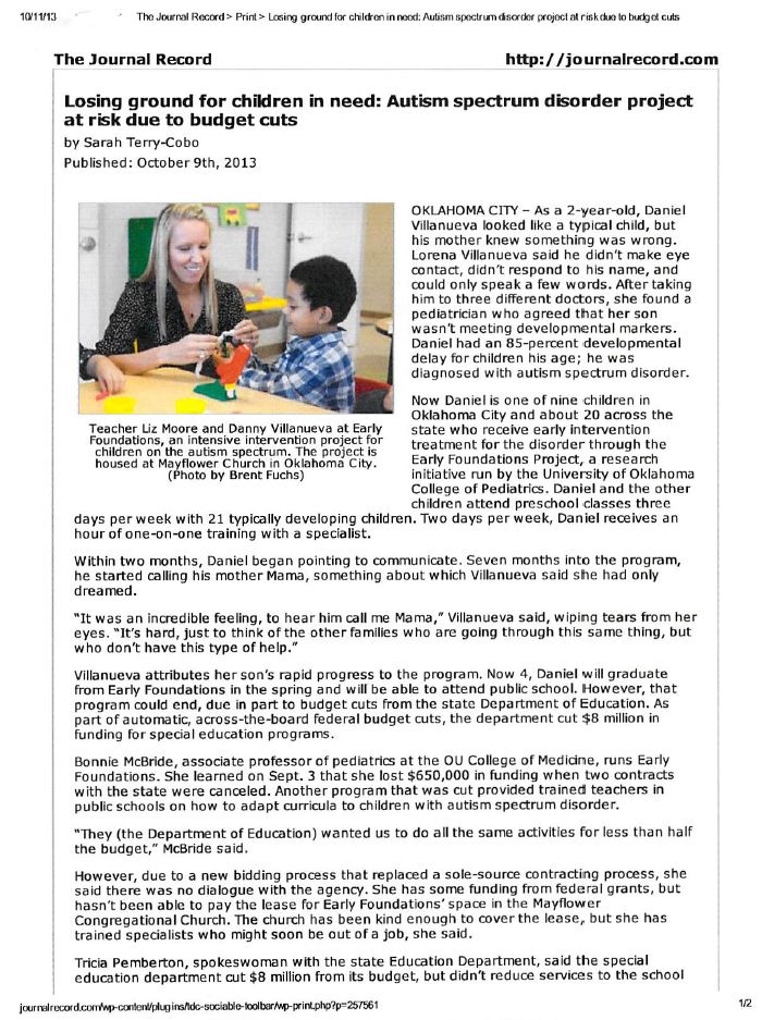 Losing ground for children in need – Autism spectrum disorder project at risk due to budget cuts (page 1)