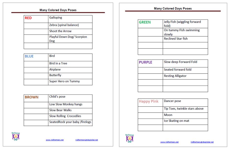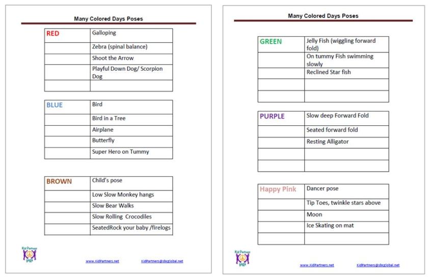 My Many Colored Days – pose ideas printable from Kid Partners, Inc