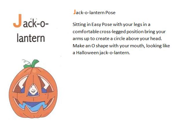 - Snowmen All Year by Caralyn Buehner (snow (freeze/melt), kite, boat, flower, tree, tiger, candle, blow out the candle breath, rollercoaster group pose (YogaKids), swimming, gate, firefly (Namaste), star, ocean breath, jack-o-lantern pose (https://omazingkidsllc.com/wp-content/uploads/2011/09/pumpkin-pose.jpg)