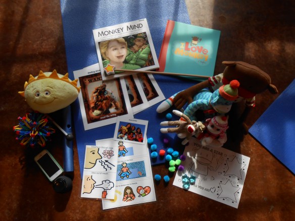 I typically develop my OMazing Kids Yoga lesson plans around a children’s picture book. Books provide a clear beginning & end and provide visual information to attend to. Many of the children I work with have special needs, so providing this extra structure is helpful for them.