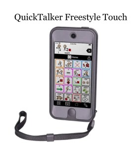 QuickTalker Freestyle Touch: https://quicktalkerfreestyle.com/quicktalker-freestyle-touch-product-tour/ (Updated 10/23/22: Sadly this device is no longer available since the iPod Touch that was used to build it was discontinued)