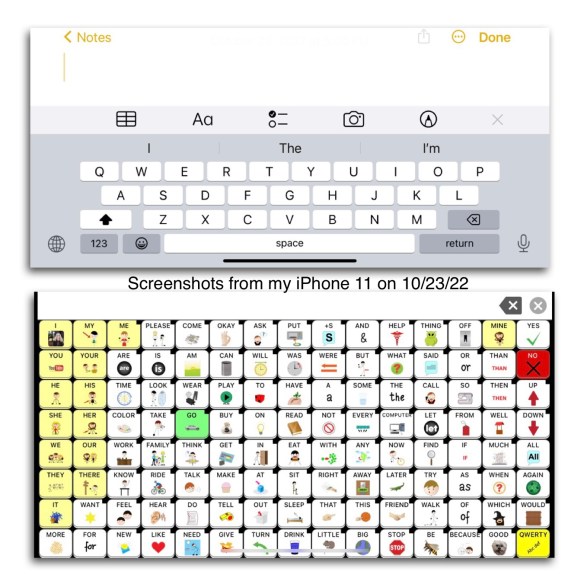 Some app developers claim that it would be impossible to offer their app on an iPhone because it would “mess with the motor plan” or “the buttons would be too small”. Hmm… somehow Speak for Yourself did this way back in 2016 and their app has 120 buttons per page and is a “motor planning” based app. In the years since then I’ve seen several posts from AAC users, parents, SLPs, teachers, etc. who all appreciate the flexibility that this offers. The screen on the largest iPhones are only a couple of inches smaller than an iPad Mini. Even on my iPhone 11 with its 6.1” screen I’m able to use this app well enough to do some modeling and use it all the time to take a look at the Settings area to answer questions about the app when I don’t have my iPad with me.