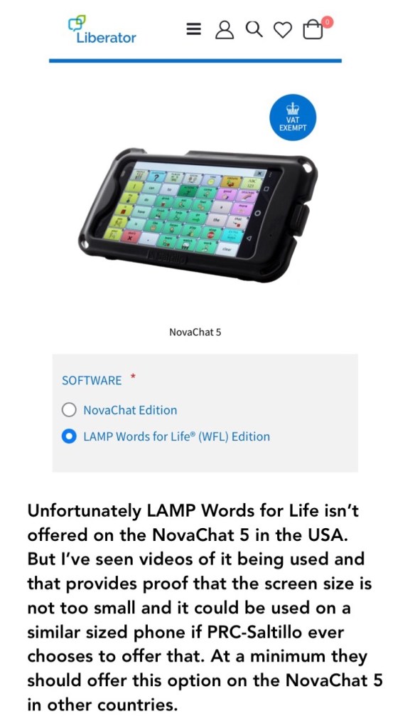 Updated 9/19/23: According to the PRC-Saltillo website effective November 30, 2023 the NovaChat 5 will no longer be available for purchase. I’ll update this post once I get official word regarding any new pocket-sized SGDs from this company. )