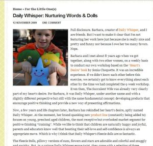 I was looking for some ideas for kids affirmations a few weeks ago and ran across this old blog post from 2009: http://www.thesucculentwife.com/daily-whisper-nurturing-words-for-kids/.